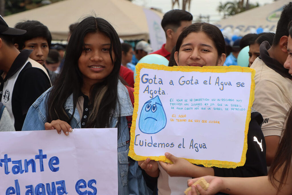 La campaña, que se replica en todo el territorio nacional, tiene el propósito de sensibilizar a la población sobre el cuidado y uso racional del recurso hídrico, frente a la crisis hídrica que enfrenta el país.