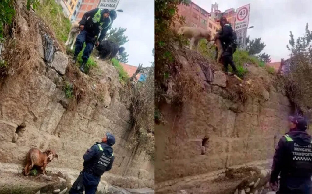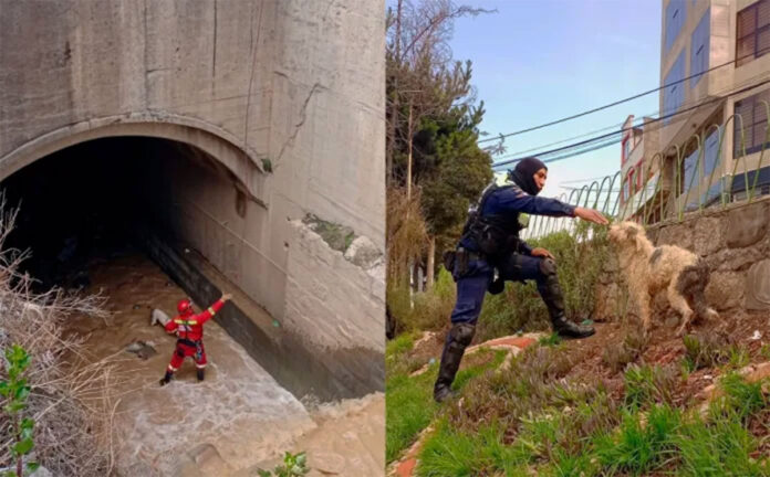 La pasada jornada, los efectivos de la Guardia Municipal de La Paz rescataron y pusieron a buen recaudo a dos perros que estaban atrapados en el río Choqueyapu, “a la altura” del inicio de la autopista La Paz – El Alto.
