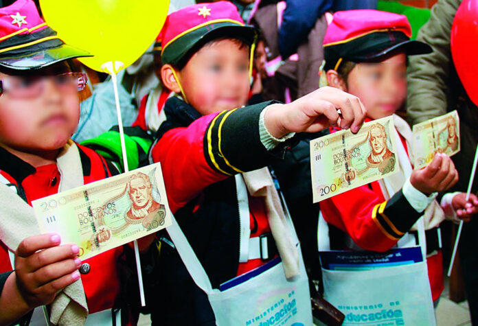 El bono de Bs 200 tiene el propósito de contribuir a la disminución de la tasa de deserción escolar, incentivando la matriculación, permanencia y culminación del año escolar de los estudiantes en Bolivia.