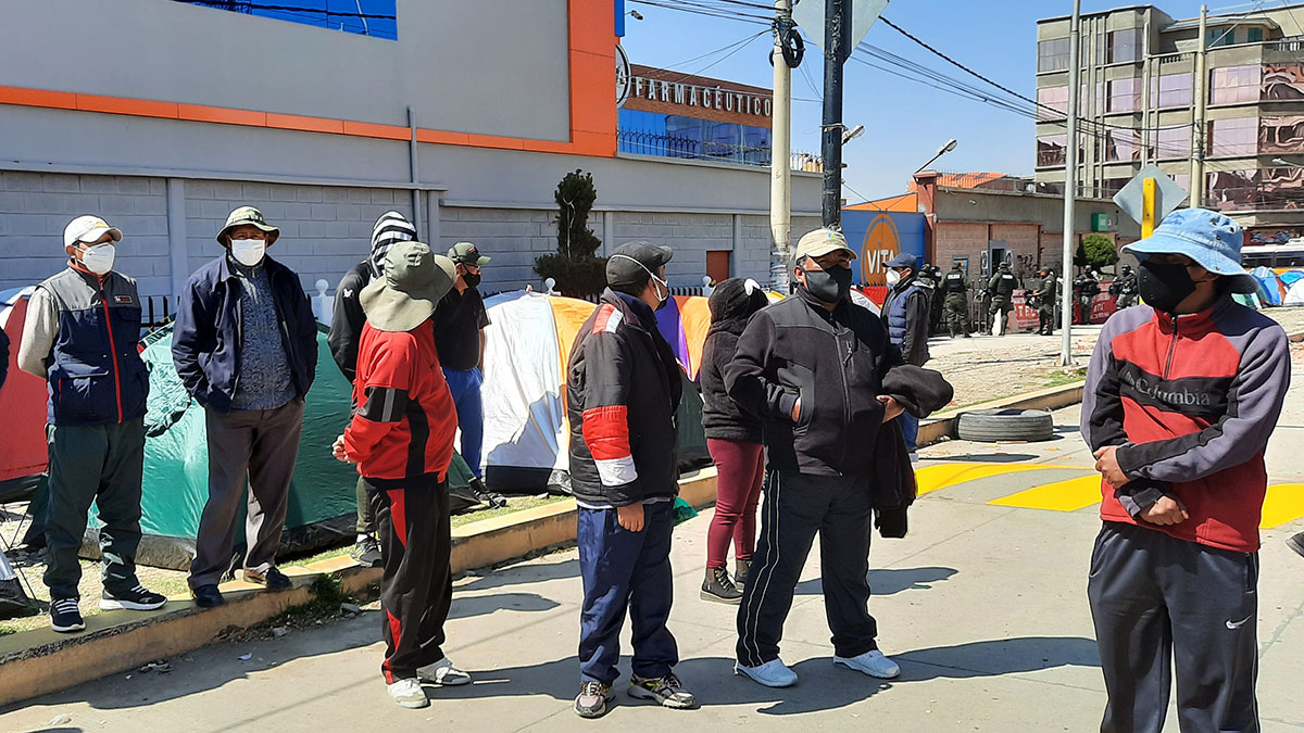 En las afueras de la empresa, se armaron al menos 20 carpas y a sus alrededores los trabajadores mantienen su vigilia ante la mirada de un contingente policial de ocho efectivos, quienes resguardan el ingreso de la infraestructura, que se ubica sobre la avenida Ladislao Cabrera en El Alto. Desde el lunes, las labores están paralizadas en el sitio.