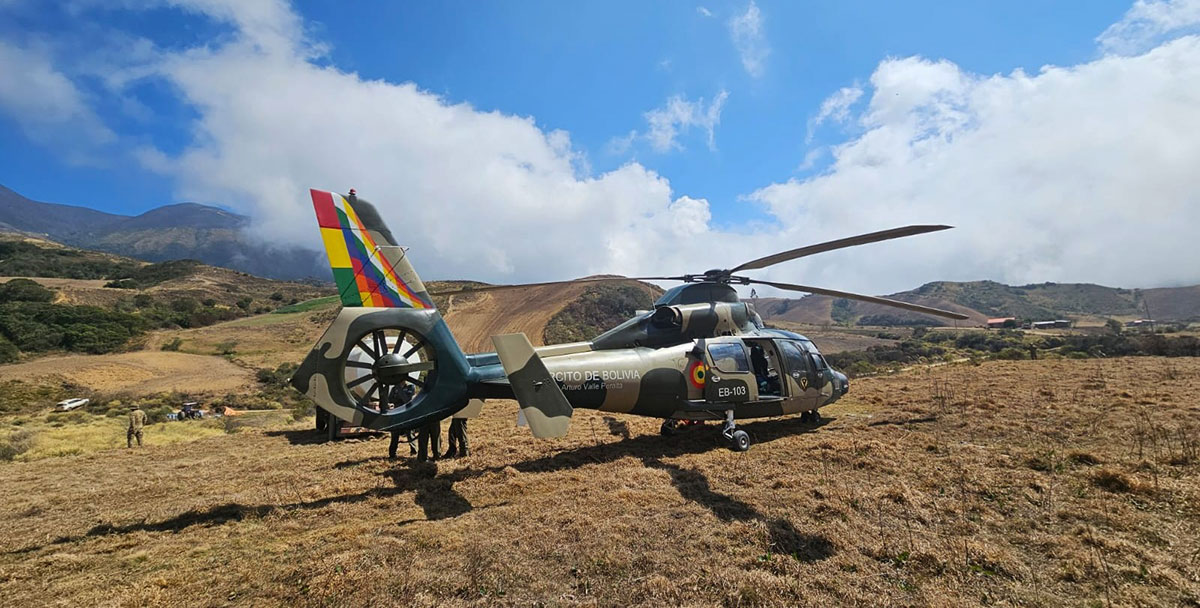 El Ministerio de Defensa envió un helicóptero que operó durante la mañana de este jueves en Cochabamba y realizará algunas descargas adicionales para el enfriamiento de los restos de incendio y luego se replegará, explicó la autoridad.