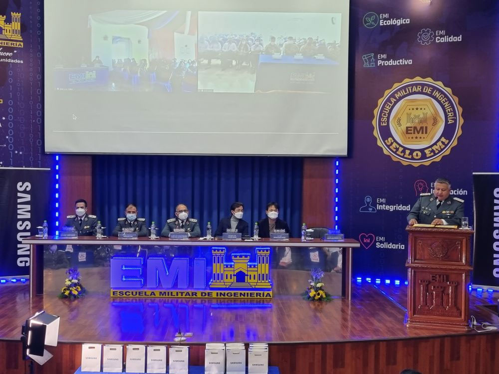 Con la Escuela Militar de Ingeniería – EMI se suscribió un convenio de cooperación interinstitucional basado en tres líneas de acción: trabajo conjunto en el área de Responsabilidad Social en beneficio de la población vulnerable identificada por la EMI, la creación de un programa de descuentos de productos de la marca Samsung para estudiantes y, el desarrollo de talleres especializados en favor de alumnos de último grado. Adicionalmente, el convenio incluyó la entrega de dispositivos móviles para los estudiantes becarios de limitados recursos en las filiales de la EMI en las ciudades de La Paz, Cochabamba y Santa Cruz.