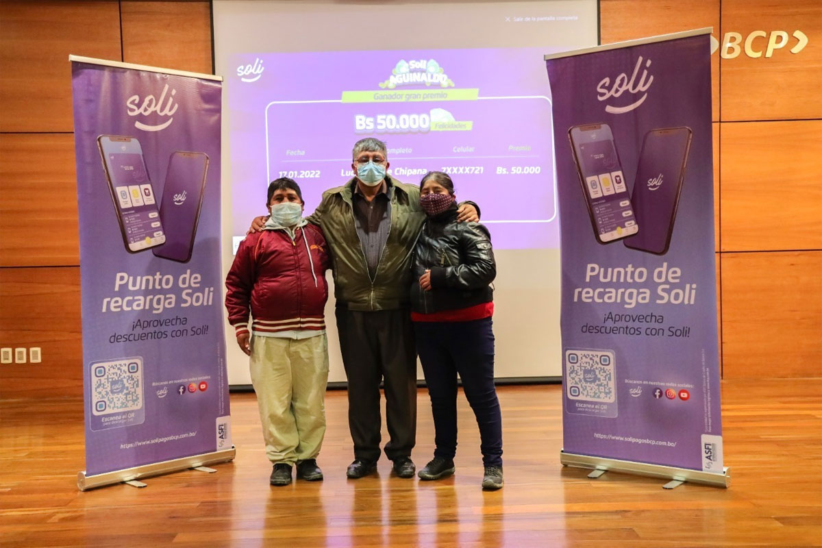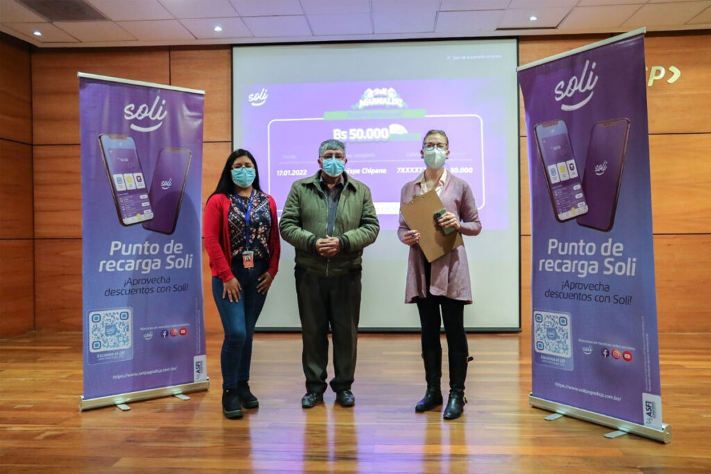 SoliAguinaldo tuvo su último sorteo el lunes 17 de enero e hizo posible que cada persona que descargó la aplicación en su celular y abrió su cuenta de usuario tenga la oportunidad de ganar dinero por sus transacciones realizada. El ganador de Bs 50.000 fue el señor Lucio Quispe Chipana, quien accedió a tal premio gracias a las múltiples pagos rápidos, fáciles y seguros que efectuó a través de la app. La promoción repartió más de 150.000 bolivianos entre 32 ganadores de Bs 3.000, uno de Bs 10.000 y uno de Bs 50.000.
