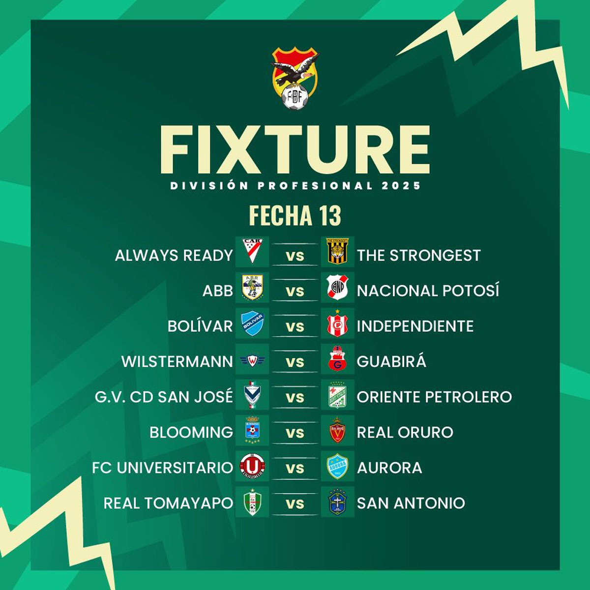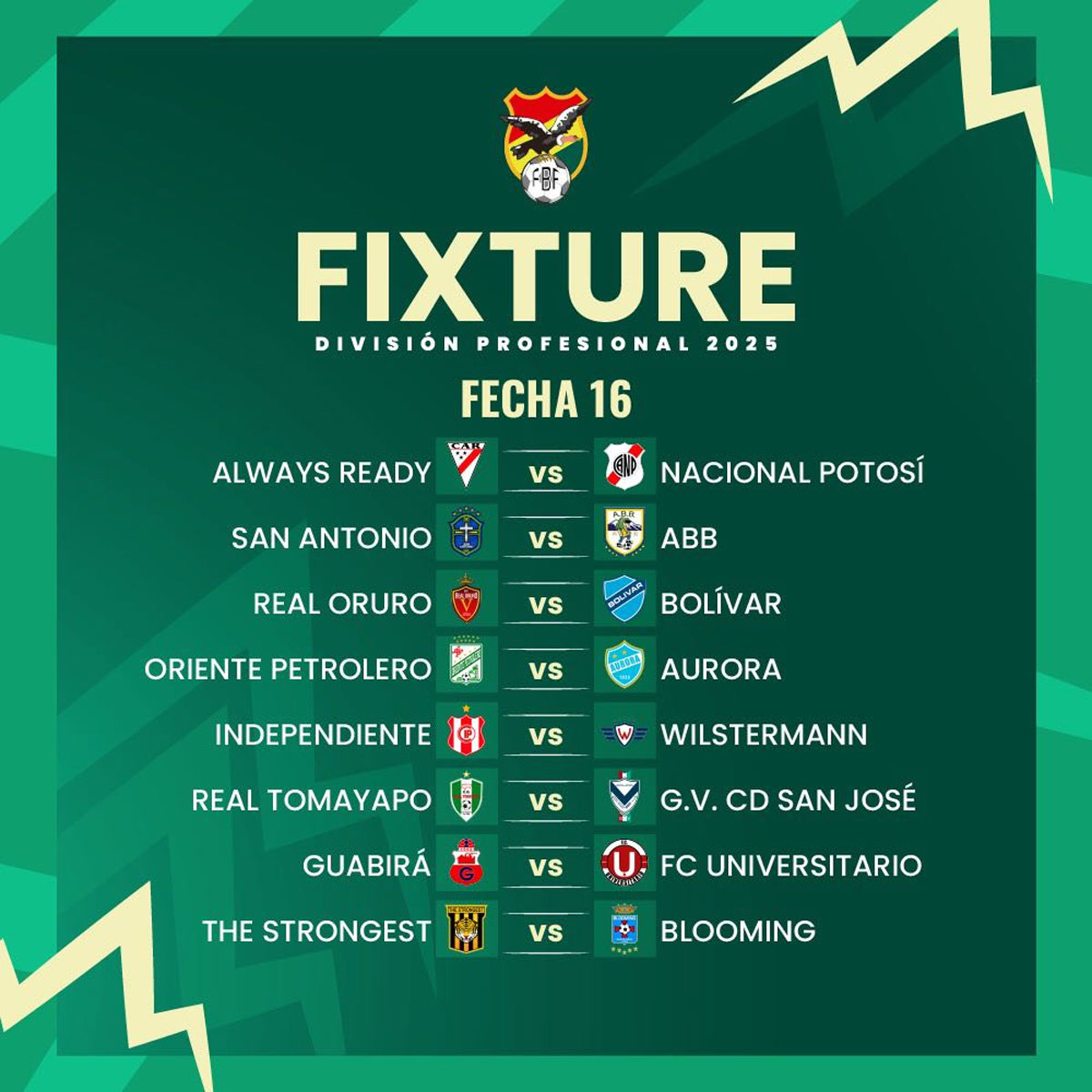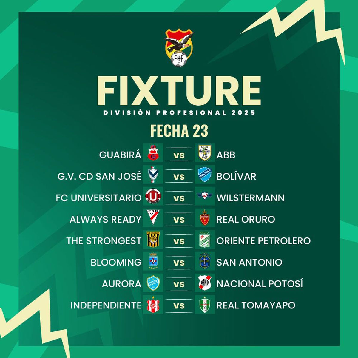 La Federación Boliviana de Fútbol (FBF) publicó ayer martes las 30 jornadas del torneo “todos contra todos” 2025 de la División Profesional del Futbol Boliviano, sin especificar días y horas.