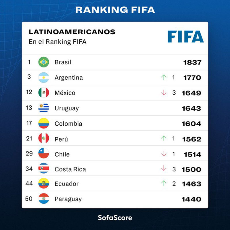 Recientemente, la FIFA actualizó el ranking de las mejores selecciones del mundo, a menos de seis meses del inicio del Mundial de Qatar. En dicha lista aparecen como líderes los equipos de Brasil, Bélgica y Argentina, dejando fuera del podio al combinado francés.
