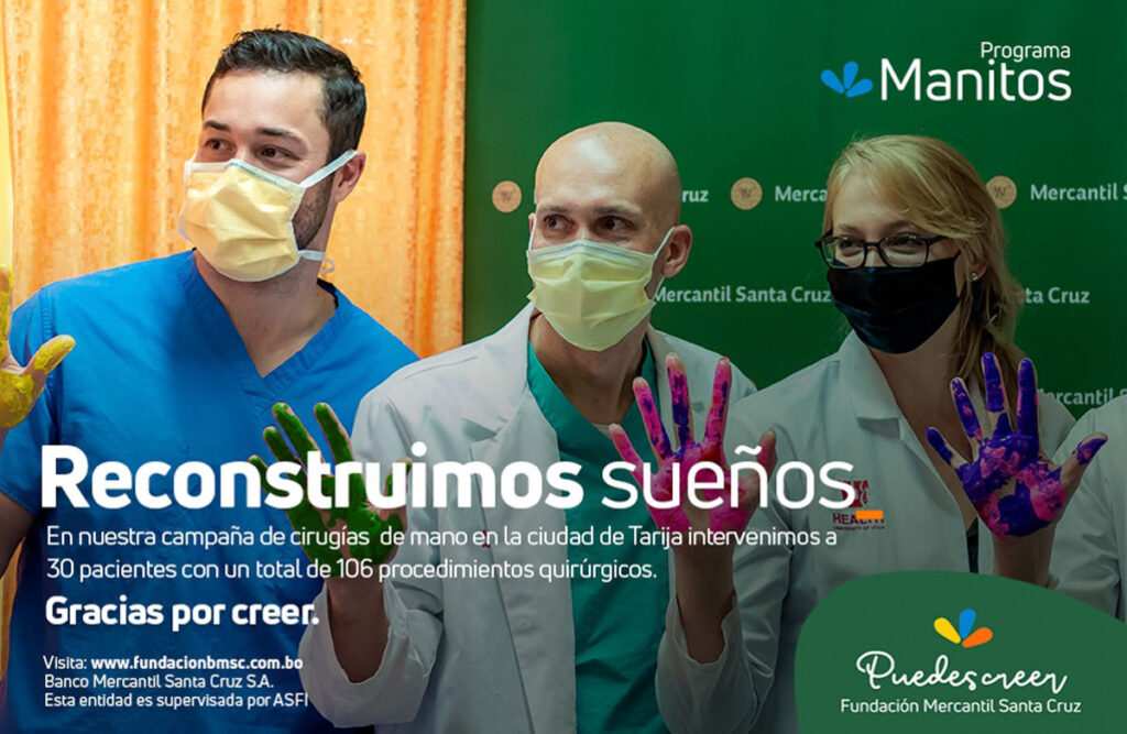 Desde el 2013, Puedes Creer – Fundación Mercantil Santa Cruz en alianza con la Fundación SOS Mano Bolivia, impulsa el “Programa Manitos”, que busca devolver esperanza a todas las personas que tienen un problema de mano o miembro superior. A través de este programa, se realizan cirugías gratuitas a personas de escasos recursos que tienen problemas de malformaciones congénitas, secuela de quemaduras o traumatismos severos. Como resultado de la operación, se pretende que los beneficiarios puedan recuperar la movilidad en sus manos, devolviéndoles la oportunidad de utilizarlas para lograr darse a sí mismos y a sus familias un mejor futuro y una mejor calidad de vida.