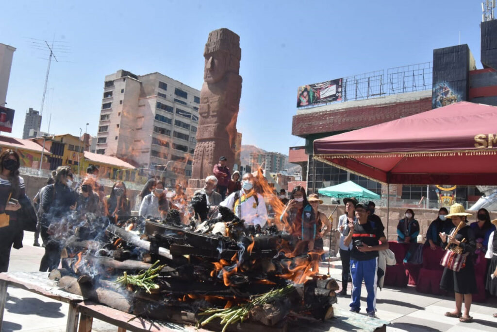 La Alcaldía de La Paz comenzó el primer día de agosto con un ritual andino de agradecimiento a la Pachamama, pidiéndole salud y prosperidad para la población. La ofrenda se realizó en el ‘Templete Semisubterráneo’ de la plaza Tejada Sorzano de Miraflores.