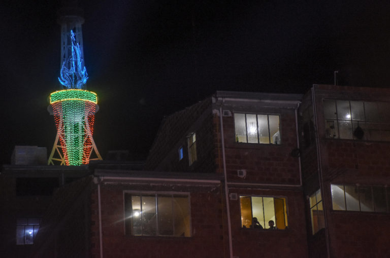 Una guirnalda de 4.000 luces Led y un sistema eléctrico en dimensión 3D, se usaron para armar la estructura, dando la figura de una enorme tea y que se puede apreciar desde distintos puntos de la ciudad de La Paz, indicó.