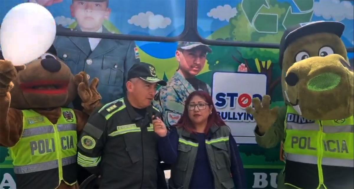 Este miércoles, la Policía Boliviana presentó el “Dino Bus” que tiene el objetivo de prevenir la violencia de manera interactiva en colegios, partiendo de la concientización con jóvenes y niños de los municipios del departamento de La Paz, informó el comandante departamental de la Policía, coronel Edgar Cortez.