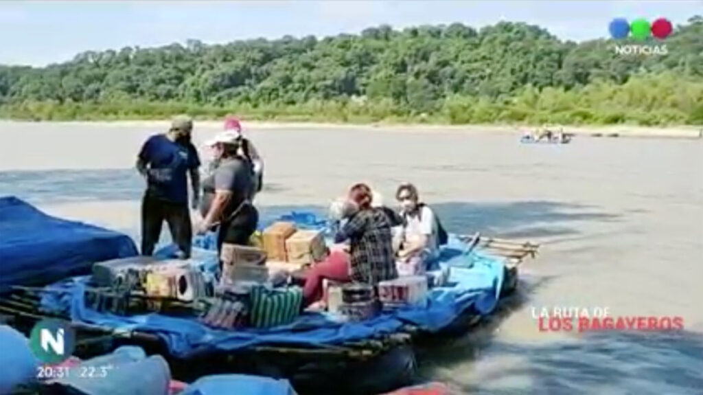 “ Estoy llevando 4 docenas de zapatillas (tenis) para entregar en Aguas Blancas”, admite otro que dificultosamente hace equilibrio sobre la balsa. Desde esa ciudad , ubicada en el departamento de Orán, al noreste de la provincia de Salta, los tenis viajarán hacia Buenos Aires, Rosario, Córdova y Tucumán, entre otros destinos.