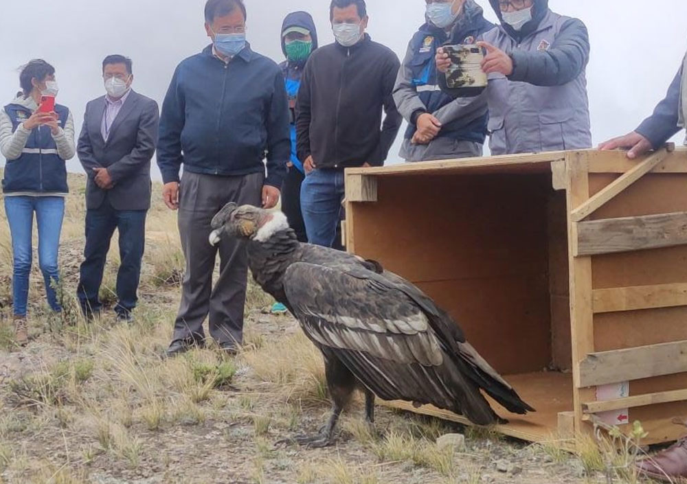 “El ave fue rescatada el 24 de noviembre, se realizó los cuidados y tratamientos correspondientes para estabilizar al cóndor y generar las condiciones para que vuelva a su habitad natural”, expresó el ministro de Medio Ambiente y Agua, Juan Santos.