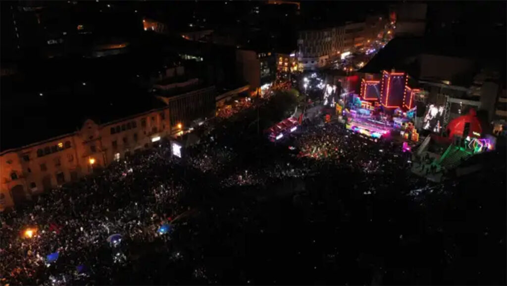 Asimismo, imágenes capturadas por drones que sobrevolaron el escenario del Primer Festival Internacional Verbena 2023 mostraron la masiva asistencia de la población paceña para de ser parte de la celebración por la efeméride del 16 de julio de 1809.