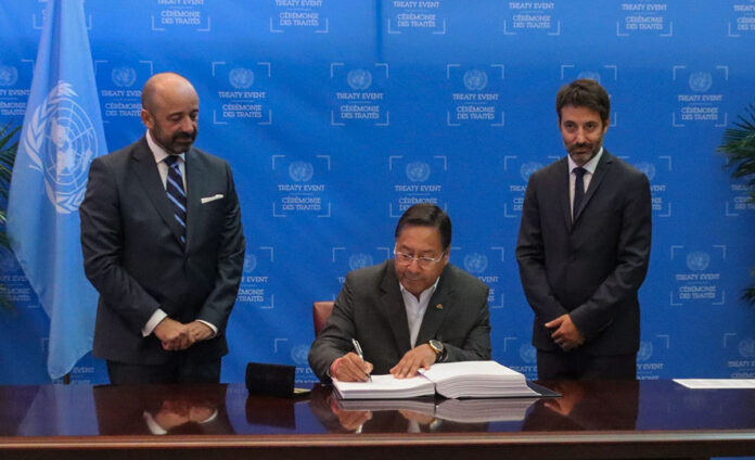 El presidente Luis Arce suscribió este miércoles el Acuerdo Sobre la Conservación y Utilización Sostenible de la Biodiversidad Biológica Marina de las Zonas Fuera de la Jurisdicción Nacional, aprobado por la Asamblea General de las Naciones Unidas.