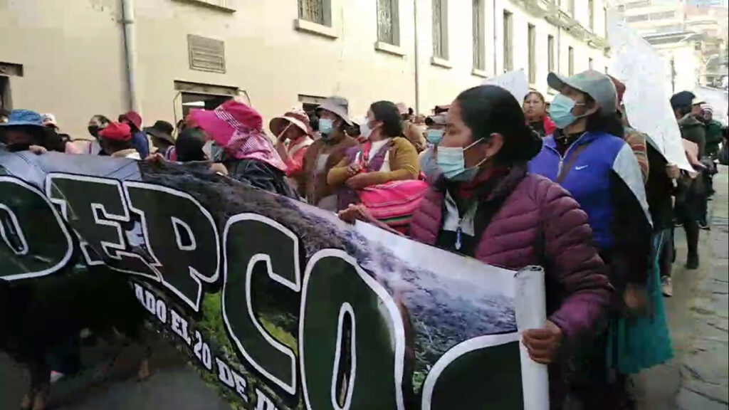 “¡Cocaleros de pie, nunca de rodillas!”, “¡queremos justicia!”, gritaban las mujeres productoras de coca.