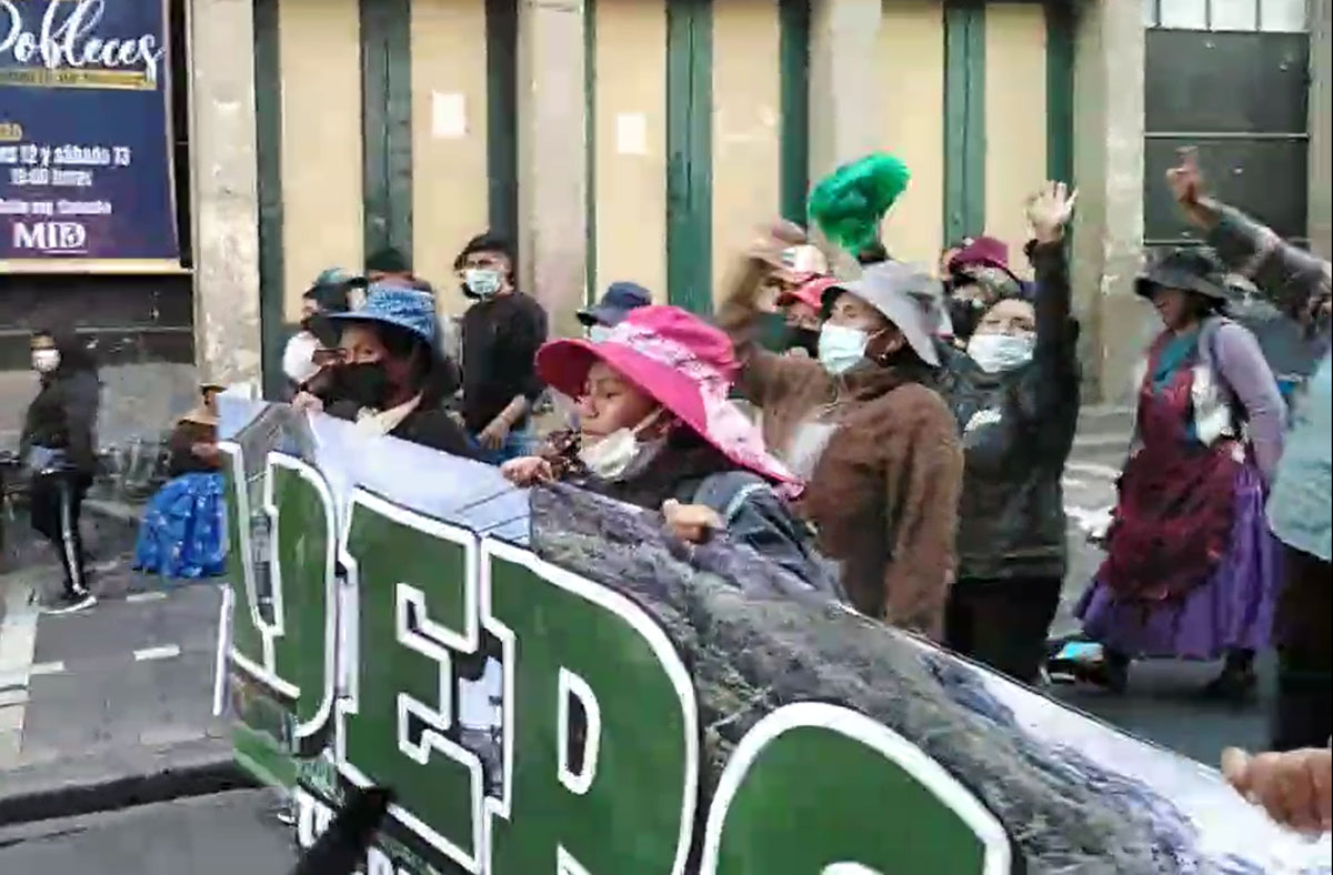 “Nosotras estamos dirigiendo la marcha porque estamos pidiendo la liberación de nuestros detenidos. No nos dejan verlos, no sabemos cómo están (…). Como han detenido a nuestros hijos, esposos, las mujeres estamos a saliendo a marchar”, sostuvo una de las cocaleras que encabeza la marcha.