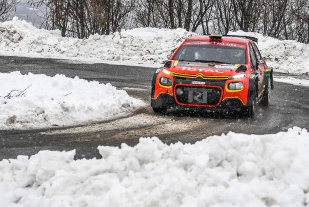Los pilotos corrieron en asfalto y en sectores de hielo y nieve en las carreteras del norte, por el temporal cerca de Bérgamo.