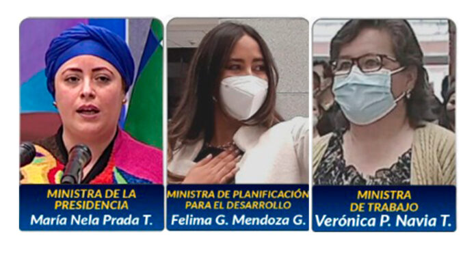 Arce posesionó el lunes a 13 ministros y tres ministras como parte de sus más cercanos colaboradores. Aunque solo representan el 19% del gabinete, Marianela Prada, Gabriela Mendoza y Verónica Navia están al frente de tres carteras que son estratégicas para el Estado: Presidencia, Planificación del Desarrollo y Trabajo, respectivamente.