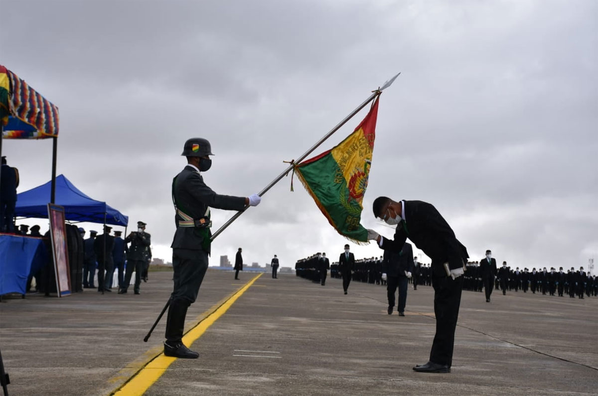 El ministro de Gobierno, Eduardo Del Castillo, participó este sábado en el licenciamiento de soldados y marineros del primer escalón categoría 2020 de las Fuerzas Armadas en la Brigada Aérea en la ciudad de El Alto, donde les recordó que su deber es defender la patria.