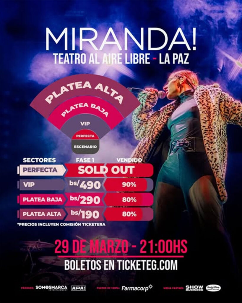 Se espera que la demanda sea alta, ¡ya que Miranda! es una de las bandas más queridas en Bolivia, con himnos como «Don», «Perfecta», «Yo te diré» y «Navidad», que han marcado a toda una generación.