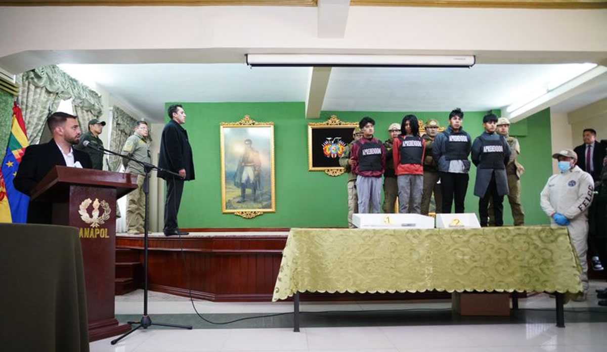 “Se inicia una serie de actos investigativos, luego de una ingeniería social la Policía Boliviana logra la aprehensión del señor Johan P. C., y Brandon L. Z., (…). Horas más tarde del mismo 25 de diciembre, se logra la captura del tercer involucrado Pedro Luis C. T. (…), la cuarta persona que ha sido aprehendida es Joel E. P. C.”, indicó el ministro de Gobierno, Eduardo del Castillo.