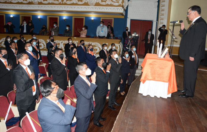 El fiscal general del Estado, Juan Lanchipa, posesionó este viernes a 55 nuevos fiscales de materia institucionalizados, quienes concluyeron con su primer programa de formación inicial para ingresar a la carrera fiscal, en el marco de la Ley N° 260 Orgánica del Ministerio Público.