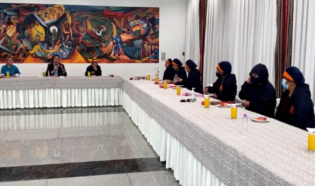 El presidente del Estado, Luis Arce Catacora, compartió la mañana de este jueves un desayuno con mamás que desempeñan su trabajo en la Casa Grande del Pueblo, para celebrar junto a ellas el Día de la Madre Boliviana.