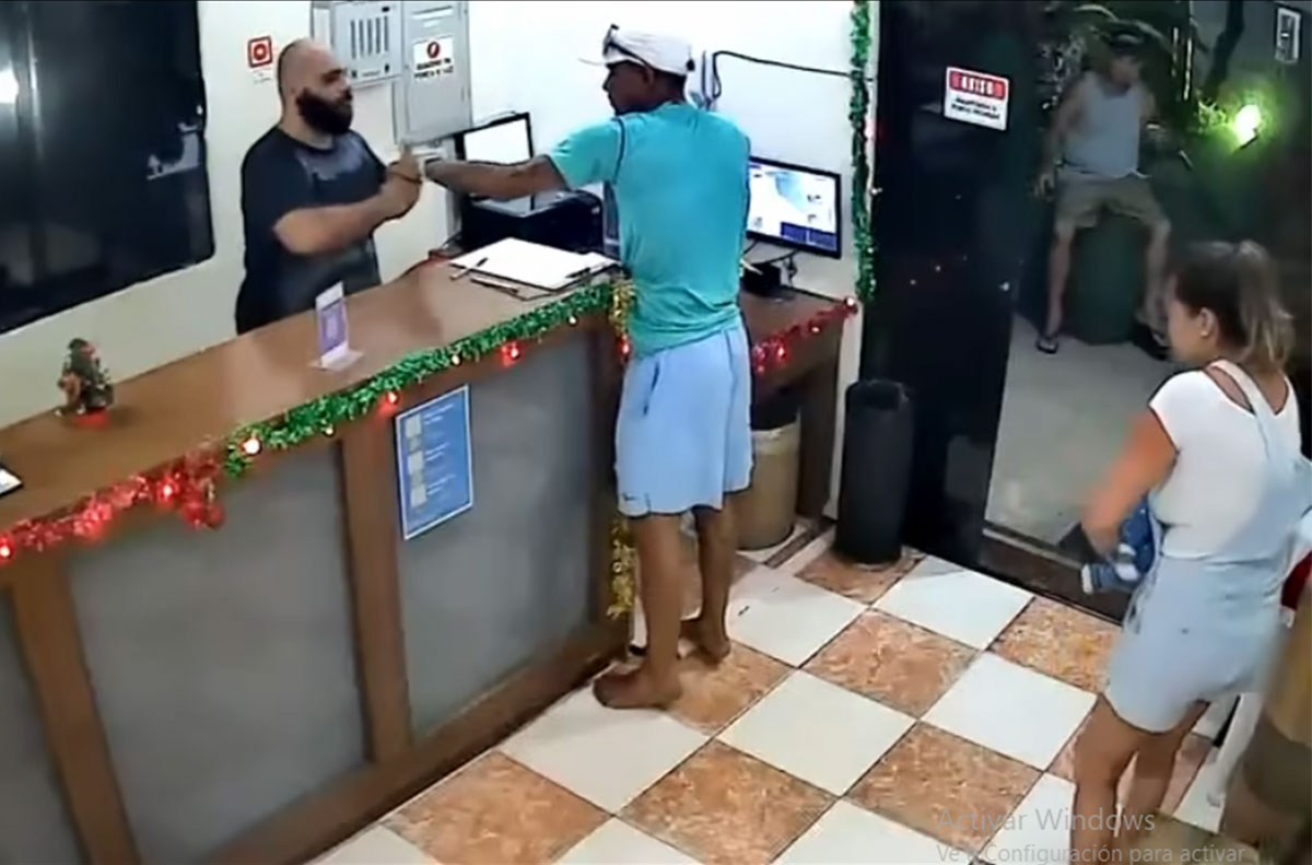 El hecho ocurrió en inmediaciones del hotel Canto do Atlântico y fue registrado por cámaras de seguridad del lugar. De acuerdo con reportes de medios brasileños, tres delincuentes armados se acercaron a un grupo de personas que se encontraba en el ingreso del establecimiento y, en pocos minutos, perpetraron el robo.