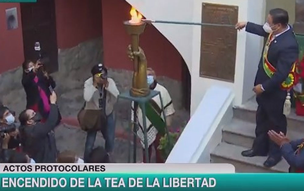 El presidente del Estado, Luis Arce Catacora, encendió este jueves la histórica “Tea de la Libertad”, que dejó el protomártir Pedro Domingo Murillo como un símbolo de emancipación, con un llamado a la unidad, por el retorno a la normalidad y la recuperación de la economía.