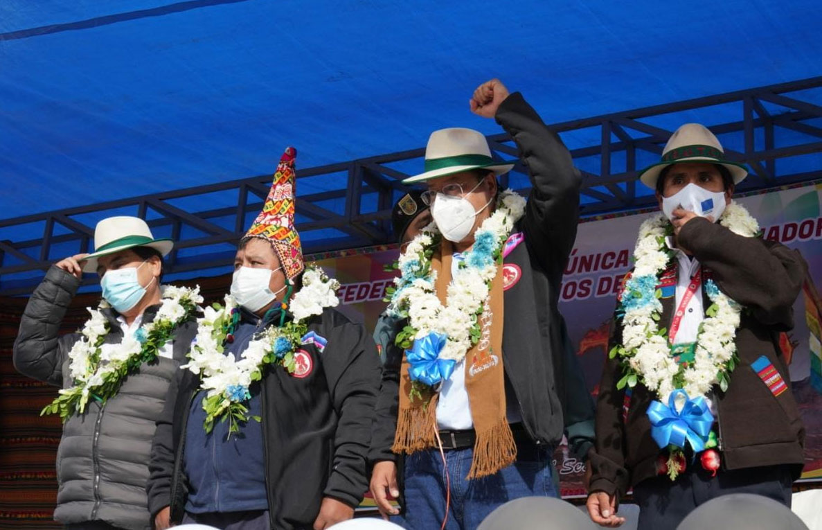 El presidente Luis Arce entregó este martes dos vehículos para la Federación Sindical Única de Trabajadores Campesinos de Oruro (FSUTCO), que celebra su 42 aniversario de creación y trabajo al servicio de su región.