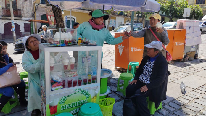 Verónica Callisaya, otra vendedora, alega que si bien hay un incremento en la cantidad de ventas, “a veces el calor también juega una mala pasada; hace que la leche no levante”. El secreto para afrontar ese obstáculo lo tienen varias: usar una lata de Gloria de Nestlé congelada y otra a temperatura ambiente; o en caso de no contar con lata del producto congelado, acuden a los cubos de hielo para que “se mantenga así como el Illimani, firme y blanquito”.
