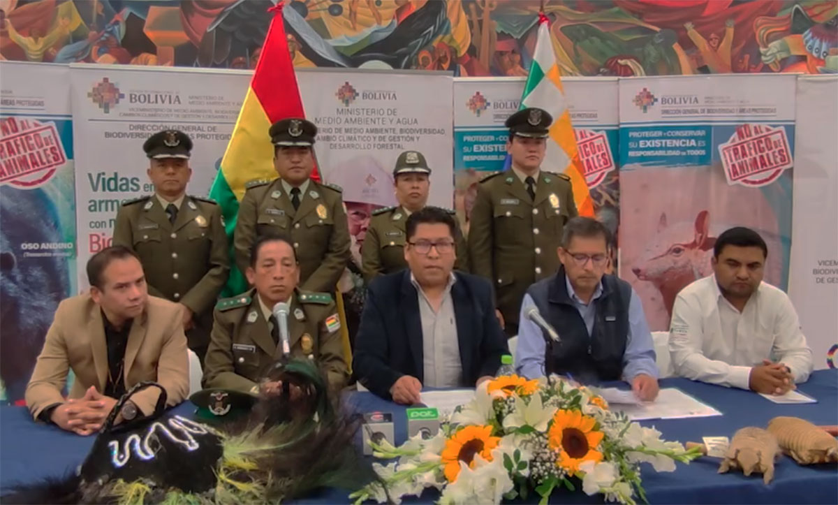 “El 9 de noviembre 2023 se emite la ley 1525 que tipifica el tráfico de fauna silvestre y la prohibición de usar partes de los animales silvestres para los trajes de los danzarines de los diferentes conjuntos, así como en las fiestas patronales. Esto está tipificado como un delito que tiene como pena privativa de libertad”, dijo la autoridad en conferencia de prensa.