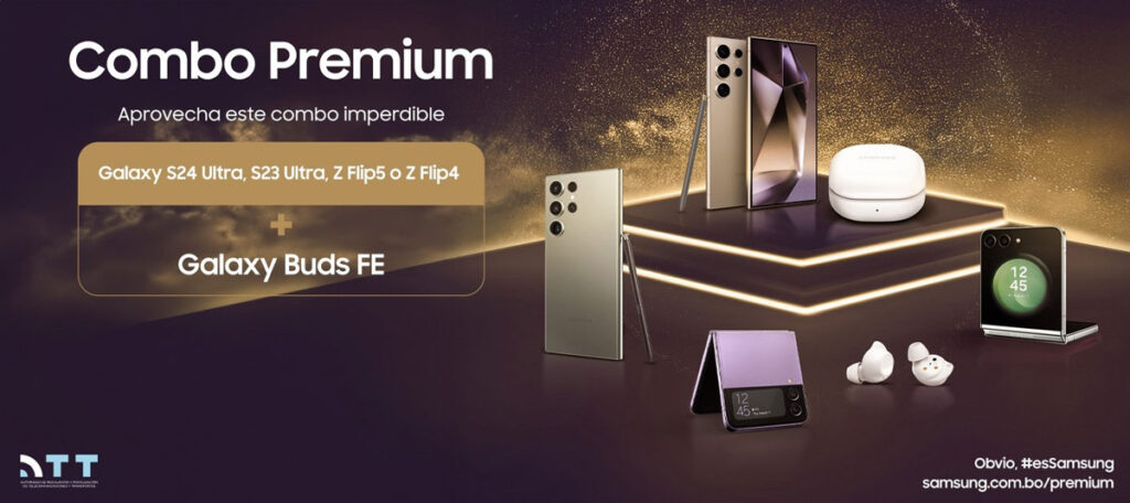 Para esta tarea, la compañía impulsa el Combo Premium, donde por la compra de un dispositivo móvil Galaxy S24 Ultra o S23 Ultra; Galaxy Z Flip5 o Flip4; y Galaxy Z Fold5 o Fold4, los usuarios obtendrán los auriculares Galaxy Buds FE. Este combo estará disponible hasta el 25 de agosto o hasta agotar stock.