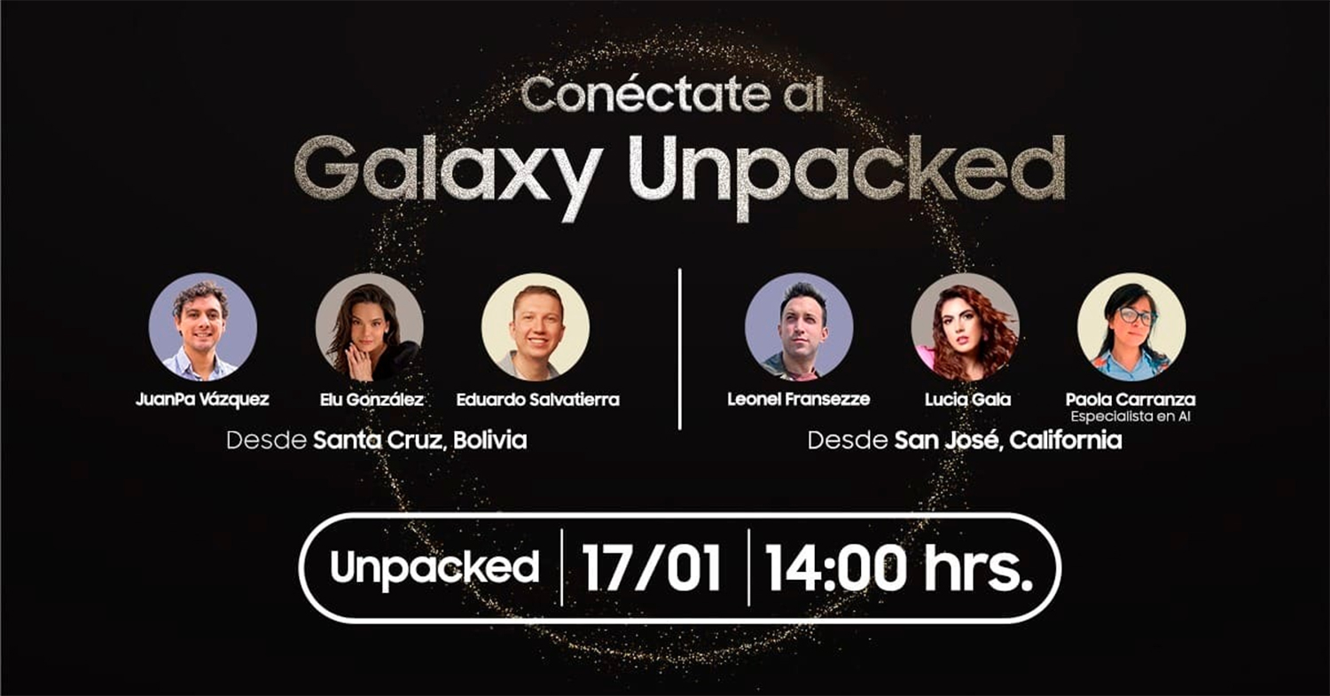 El Galaxy Unpacked se desarrollará en la ciudad de San José, California (Estados Unidos), donde la compañía presentará sus últimas innovaciones premium de Galaxy al mundo. El evento contará con la participación y cobertura del presentador Leonel Fransezze, la bloguera Lucia Gala y la experta en IA, Paola Carranza, en representación de Bolivia.
