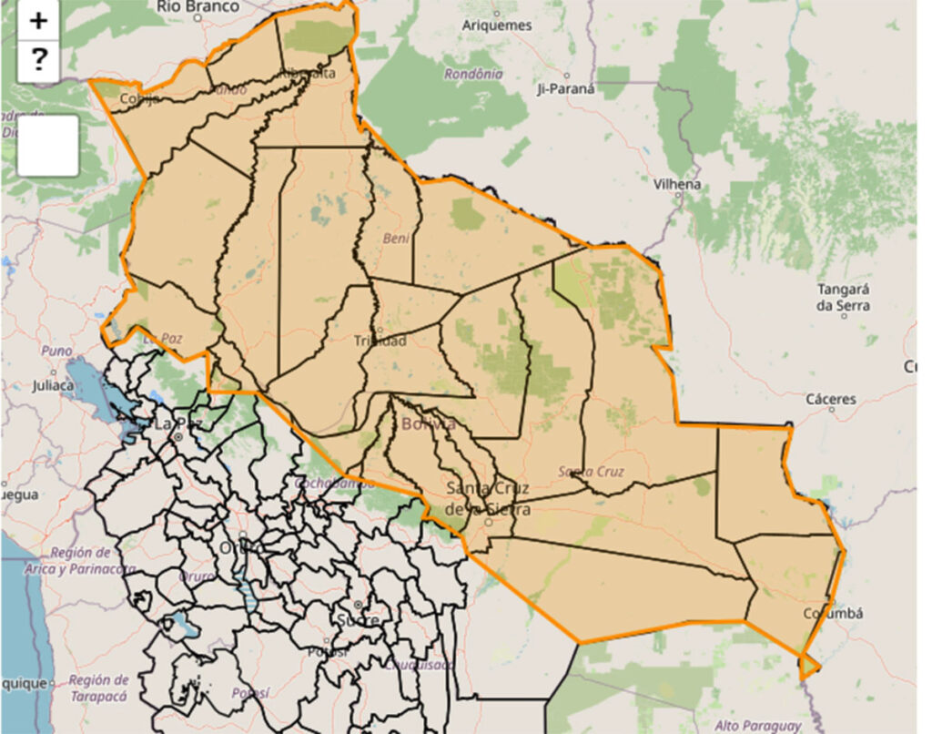 En Santa Cruz, se prevén las precipitaciones en las provincias Andrés Ibáñez, Warnes, Ichilo, Sara, Obispo Santiesteban, Chiquitos, Guarayos, Ñuflo de Chávez, Velasco, Ángel Sandoval, Germán Busch y noreste de Cordillera.