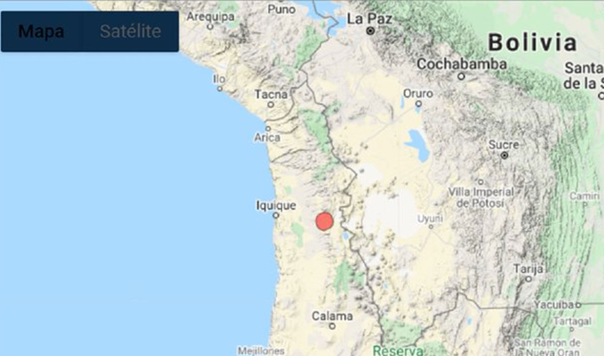 «Sismo en el Norte de Chile frontera con Bolivia del 06/12/2020 a horas 12:47:43 (hora local Bolivia), de magnitud 6.1 con una profundidad de 86.1 km», informó después del mediodía de este domingo el Observatorio de San Calixto.