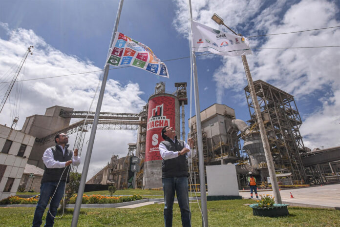 Para sellar esta alianza, el día de hoy en un emotivo acto en el cual asistieron el Comité Ejecutivo de Soboce, la Directora de Pacto Global de Nacionales Unidas para Bolivia, medios de comunicación y familia Soboce, se procedió a la iza de la bandera de los Objetivos de Desarrollo Sostenible en la planta de Viacha, la planta de cemento en producción más alta del mundo.