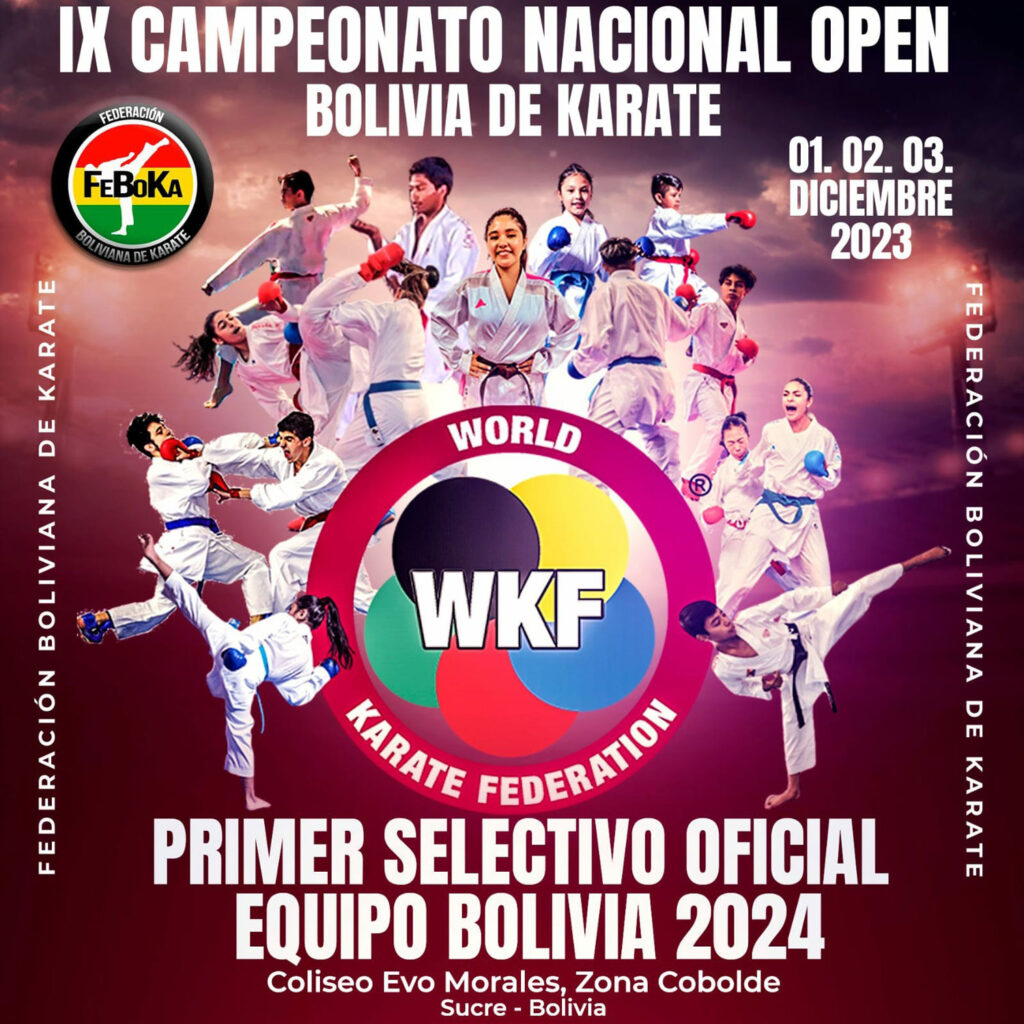 El sábado por la mañana serán las pruebas de Kata (formas) y en horas de la tarde de ese día hasta el domingo al mediodía será Kumite (combate). Todo el evento se disputará en el coliseo Evo Morales de la zona Cobolde.