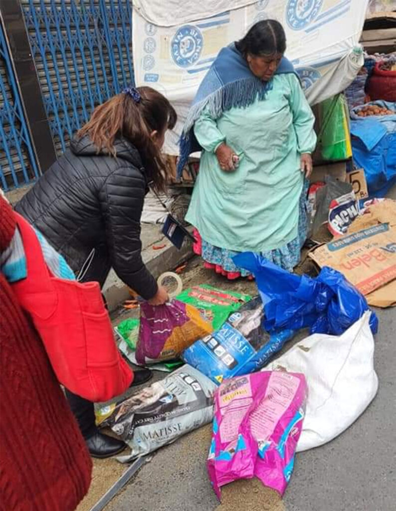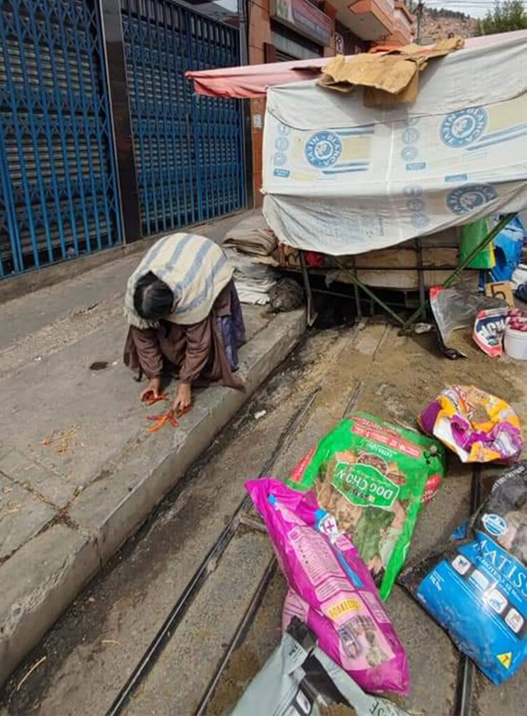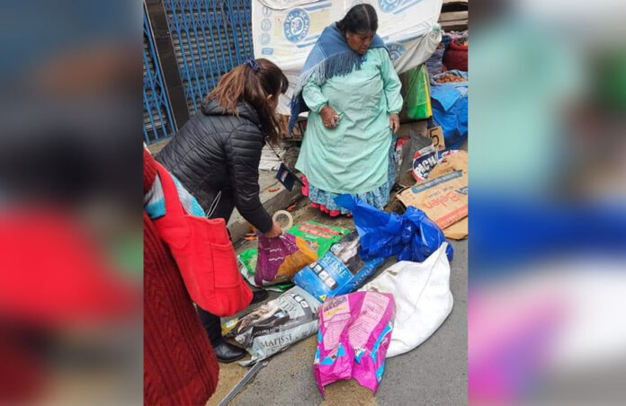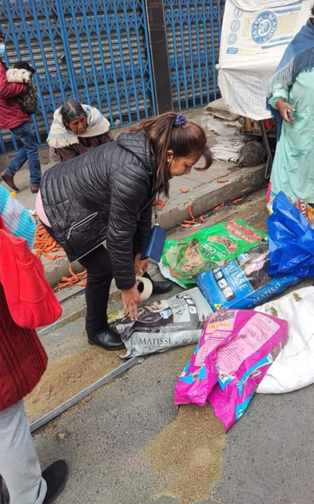En las imágenes, que se hicieron viral, la presunta profesional de odontología arroja la mercadería al suelo manifestando que obstruye el paso y se retire del lugar.