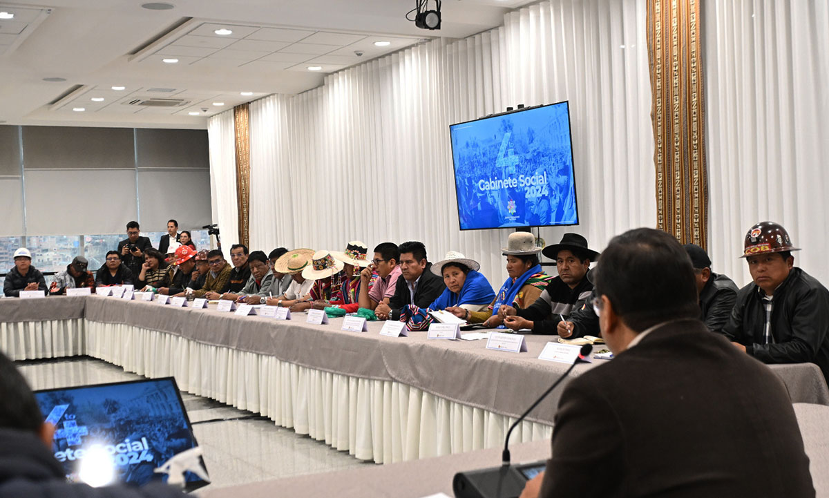 El presidente Luis Arce llevó adelante el martes 13 el “Gabinete Social Extraordinario”, con aproximadamente 30 dirigentes de organizaciones sociales, donde se habló de la coyuntura económica, el tipo de cambio del dólar, las exportaciones e importaciones.