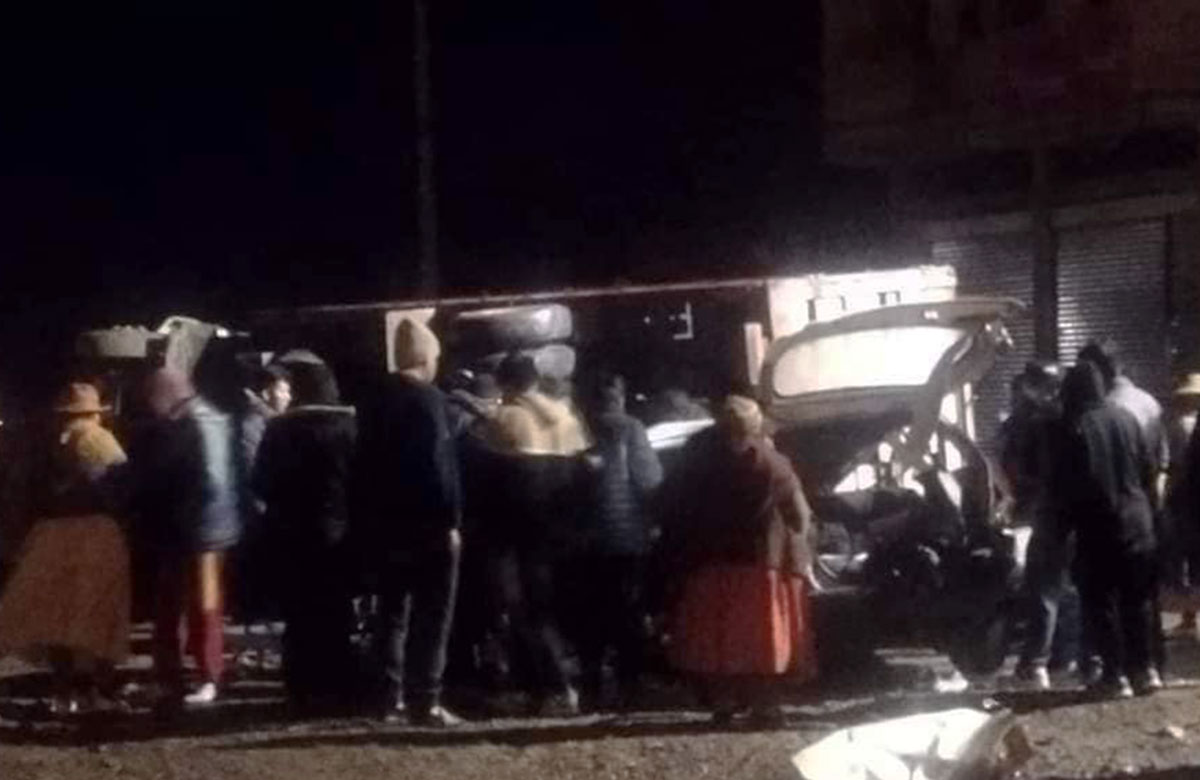 “En la carretera a Laja, altura del surtidor Chusumarca, habría ocurrido un incidente de tránsito, donde dos vehículos habrían colisionado frontalmente, con el saldo de tres personas fallecidas”, informó el bombero J. Rollano en declaraciones a Cadena A.