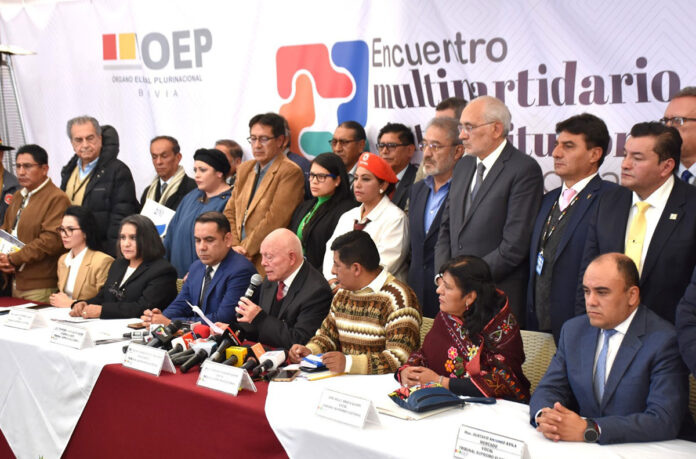 La decisión de suspender las elecciones primarias fue asumida en el Encuentro Multipartidario e Interinstitucional por la Democracia del miércoles. Participaron representantes de los 11 partidos políticos, de dos alianzas con representación en el Legislativo (Creemos y Comunidad Ciudadana), de los órganos Ejecutivo y Legislativo y de las organizaciones sociales, además de delegados del cuerpo diplomático y organismos internacionales.