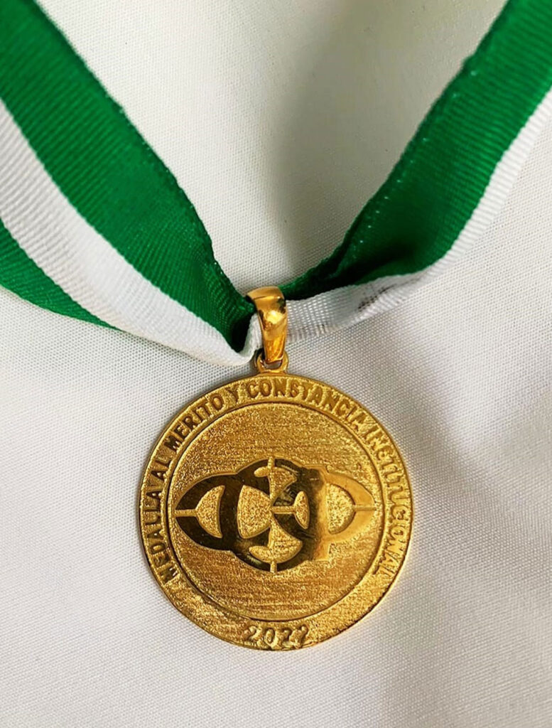 Demetrio Soruco Henicke, Presidente del Directorio del IBCE, fue el encargado de recibir y agradecer la presea dorada, a la que con justa razón calificó como “un regalo de Dios”.