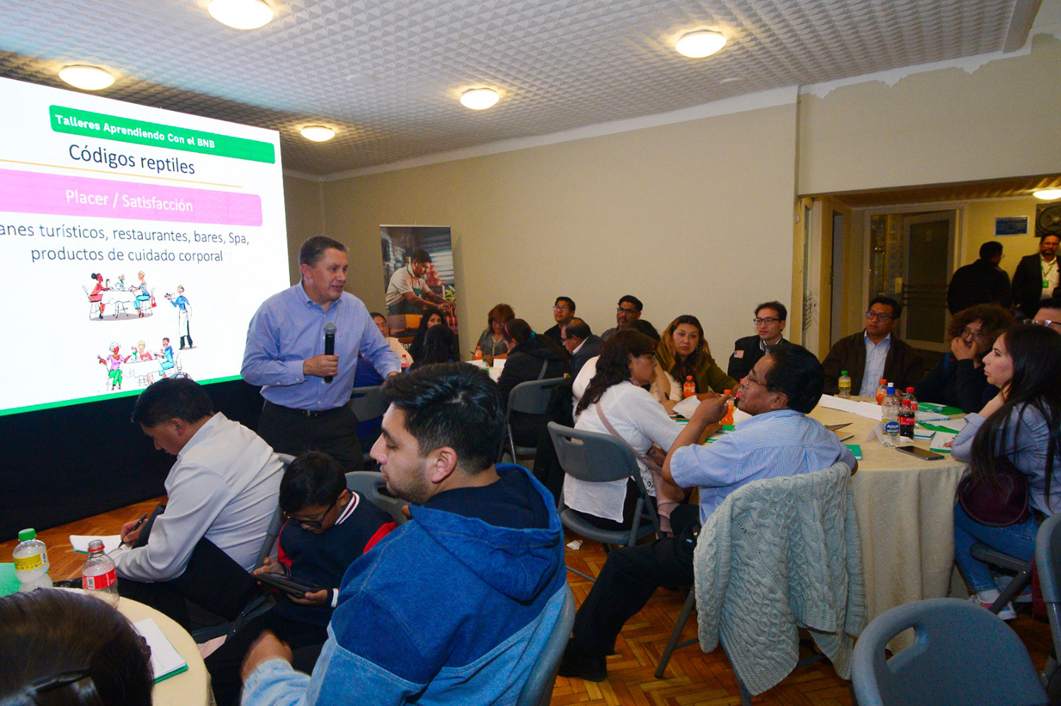 El BNB llevó a cabo por décimo quinto año consecutivo su ciclo de talleres enfocados en desarrollar y potenciar habilidades gerenciales de sus clientes del sector micro y pyme. En esta oportunidad, el ciclo de talleres, presentó temas relacionados al neuromarketing con la temática: Véndele a la mente y no a la gente. El programa estuvo conformado por cinco talleres presenciales, en las ciudades de Santa Cruz, Sucre, Cochabamba, El Alto y La Paz y, por último, un taller virtual, dirigido a los emprendedores y propietarios de pequeñas y medianas empresas (pymes) de todo el país.