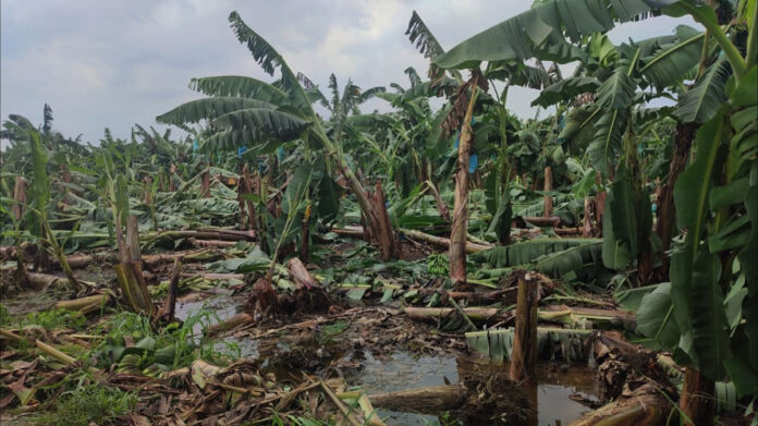 Vientos huracanados, acompañados de una torrencial lluvia, derribaron la noche del martes más de 100 hectáreas (ha) de cultivos de banano de exportación en el municipio de Chimoré, del departamento de Cochabamba.